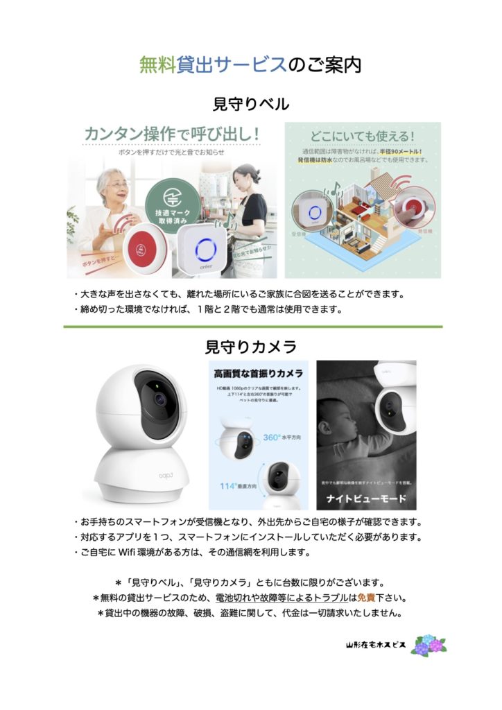 *無料の貸出サービスのため、破損や故障、電池切れ等によるトラブルは免責下さい。
