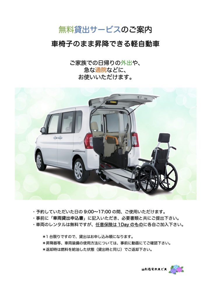 ご家族での日帰りの外出や、 急な通院などにお使いいただけます。
